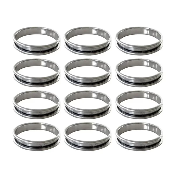 Ce lot comporte 12 cercles à palets bretons. Ils seront efficaces pour modeler votre pâte en forme de palets breton très facilement. Les formes seront parfaites ! En inox, le cercle assure une pâte dorée et croustillante.
