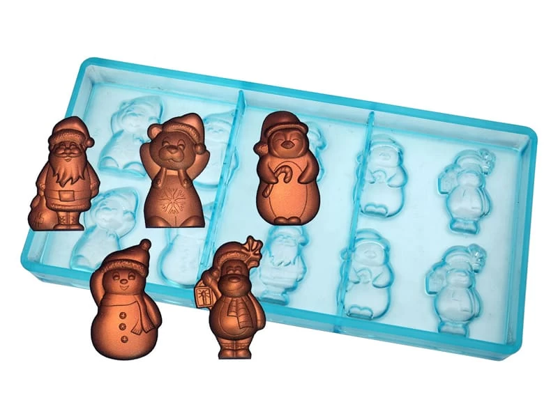 Moule en tritan comportant 10 empreintes de sujets de Noël (5 sujets assortis).