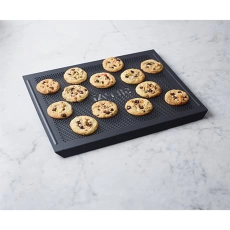 Résistante à la déformation, facile à prendre en main, elle est parfaitement adaptée à un usage dans le four classique et possède une surface utile de 42 x 32 cm. En aluminium revêtu, résistant à des températures allant de -40°C à +260°C, la plaque aluminium perforée Silpat est parfaitement adaptée à un usage quotidien tout en possédant des qualités professionnelles.